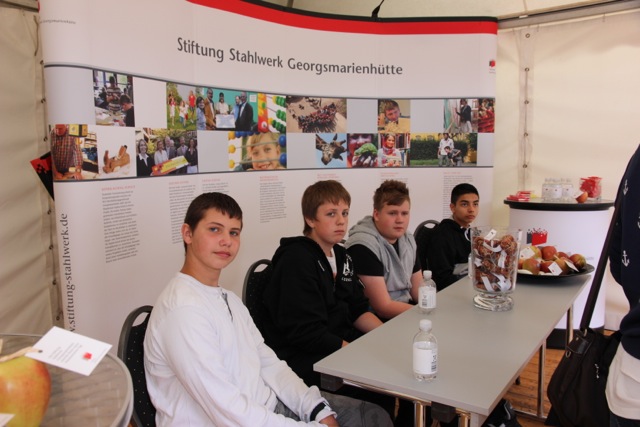 ![]() "bunt stiften!" - Die regionalen Stiftungen laden ein und wir folgen dem Ruf gern. Am 16. Juni wurden auf dem Osnabrücker Domvorplatz eine bunte Vielfalt stiftungsbezogener Projekte dem Publikum vorgestellt. Als Teil des Programms gaben Schüler unserer 8. Klasse nicht nur auf der Bühne ein gutes Bild ab und stellten dort Experimente aus dem Physiktutorenprojekt der Sophie-Scholl-Schule vor. Auch auf dem Markt der Stiftungen bewiesen sie, dass sie ihr Wissen spielend in den Alltag übertragen können. Bildunterschrift: Keine Feuerlöscher zur Hand, keine Seife mehr da? Kein Problem, wir machen es selbst! (Albert, Justin und Matthias stellen selbst gefertigte Seifen vor.) |